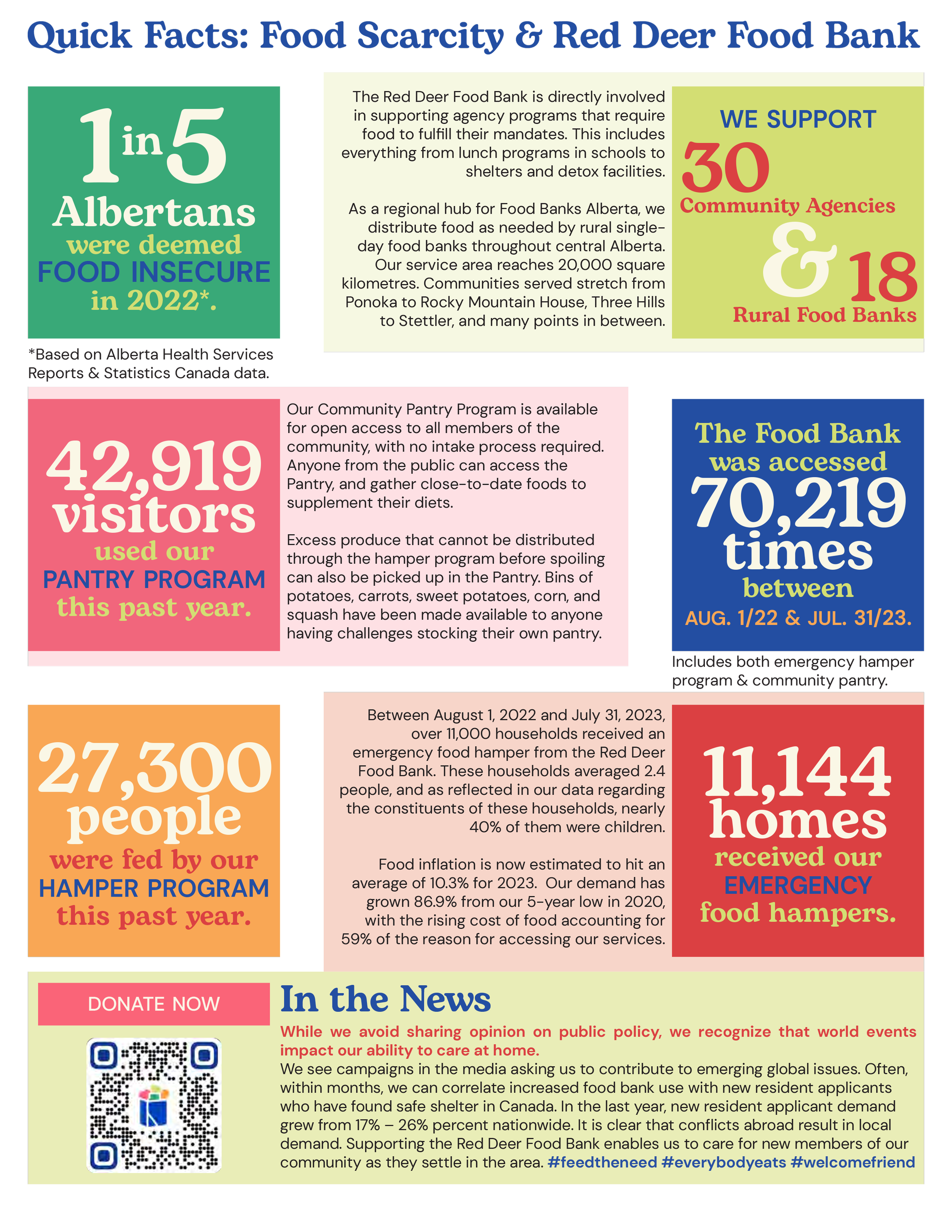Red Deer Food Bank, 2023 Annual Report/Fact Sheet.